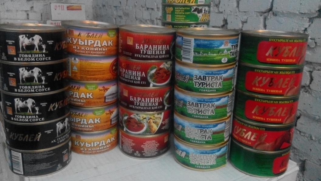 В наличии на данный момент есть: 1) Говядина в белом соусе, 2)куырдак из конины( тушеная конина со специями), 3)баранина тушеная, 4)завтрак туриста (говядина рубленая), 5)конина тушеная, 6)говядина тушеная 250 г.