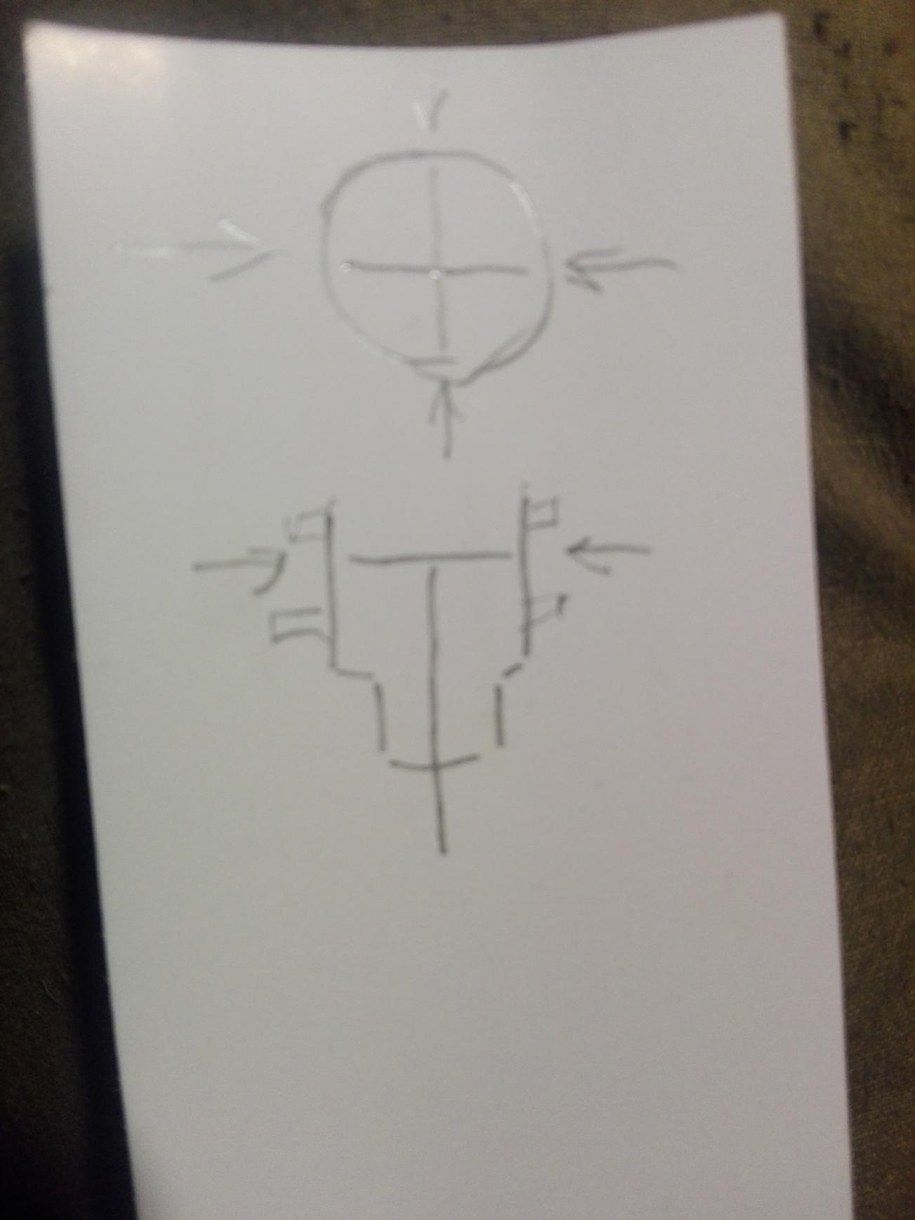 Приветствую.Крепление к дрели можно попробовать сделать вот так.(в виде крестовины или Т-образно)Где стрелки саморезы или винты.А под пальцы,если они резиновые,отверстия,я думаю,не обязательно делать овальными. Главное,чтобы не выпадали и сидели плотно.Даже если они будут немного проворачиваться,думаю,ничего страшного.Лишь бы на пластике острых кромок не было.