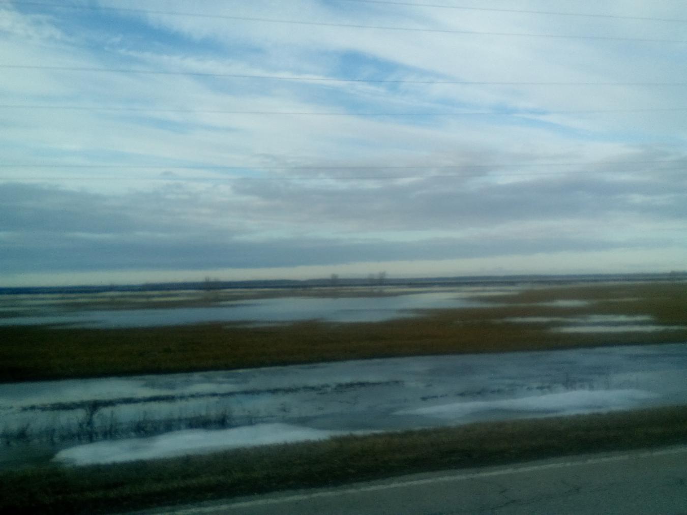 В полях водище.....в некоторых местах и краев не видать.