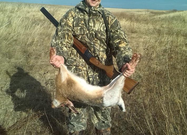 Первого в этом сезоне взял 2 ноября. Вчера погуляли и подняли одного зайца. Сидел недалеко от посадки в траве. Заяц поднялся по моей линии и сразу ушел на друга левее, я только крикнуть успел чтоб он начеку был. Друг отстрелялся по нему,зацепил его(отстрелил зайцу переднюю лапу),после этого заяц развернулся и не снижая скорости пошел на меня.Добрал его уже я.Стрелял №3 и №0 самокрутом на войлоке.