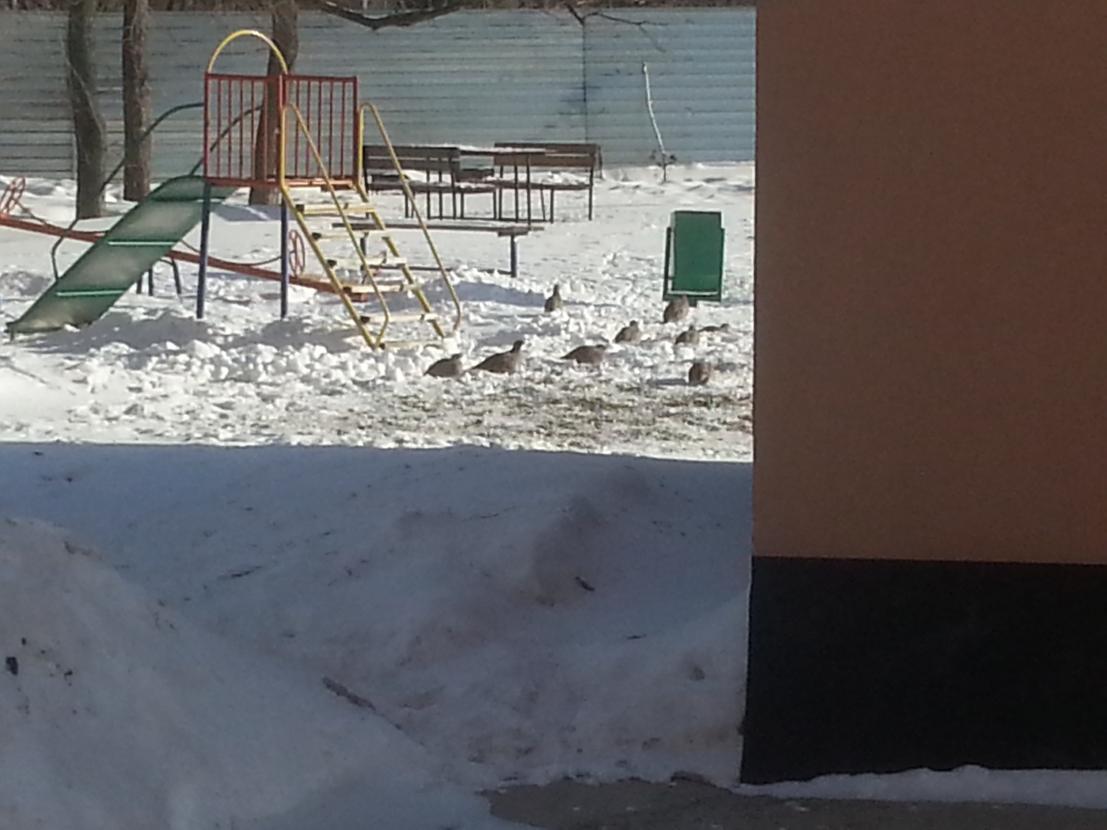 Сегодня утром во дворе... 16 штук насчитал. Кормились на детской площадке