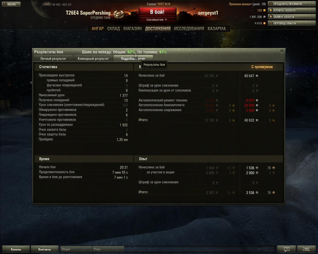 Получено опыта: 4*038 (x2 за первую победу в день)
