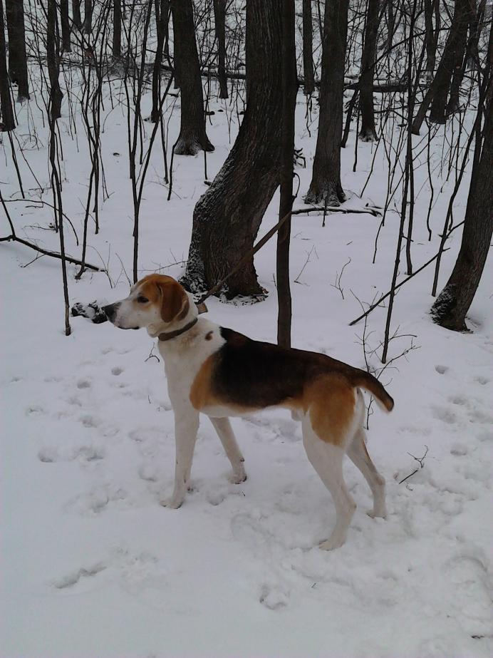 Второй след метров через 100 тропки вспрыжка в лесок, только к бугру слышу почесал... подхожу к склону вижу только пятки косого, ставлю своего друга неа след... 15мин. и вот....