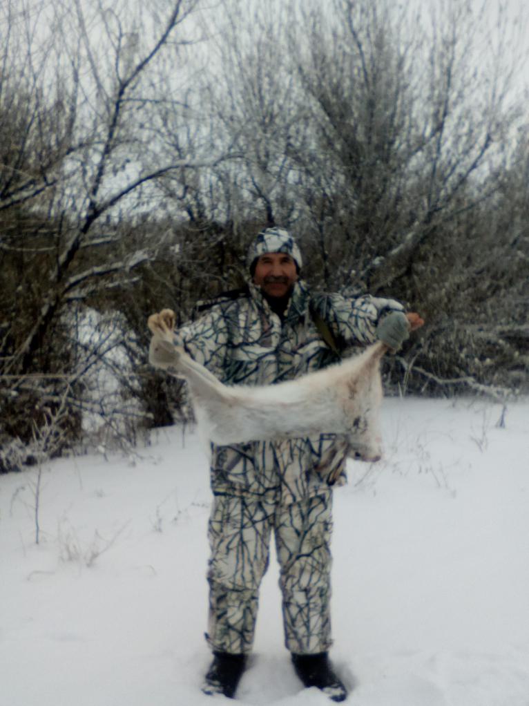25.12.2016 г. Делали выезд охотничьей компанией! Погода была неплохой, снежок шел ночью. Заехали в угодья и наткнулись на свежий след возле дороги! Нас было 4-ро, я и местный пошли вдоль дороги смотреть входные, выходные следы. Остальные двое изучали входной след и тут встает заяц, мы только и успели ахнуть от неожиданности (ну конечно и от удивления что он так близко лег у дороги, хотя мы и догадывались) ружья ни кто не доставал и не заряжал в ином случае 100% попадание было гарантировано. Посмотрев красиво бегущего зайца сделали вывод что ляжет в ближайших посадках, решили проехать в другое место пока зая ляжет. Гуляли недалеко от скважины, следы были, но ни кого не подняли. Из далека видели как гуляет поднятый зая в посадке, решили сделать загон по той посадке. Я с отцом сели в конце посадки и стали ждать нашего красавца! Через некоторое время раздался звонок, я себя поругал за то что не отключил звук! Но был сильно удивлен, что звонит загонщик, говорит: "заяц в поле!". Снимаемся с засады и преследуем зайца на приличном расстоянии предположив, что он пойдет на круг. (большая ошибка! сниматься не закончив загон нельзя! но мало опыта дает о себе знать.) Посмотрели как заяц забежал в кусты между полей идем на встречу с загонщиками, смотрю что то мелькает в траве. Это зая вылетает из за поворота на нас и встает метров 60-70, мое ружье за спиной хотел снять,но решил спугну и не стал, отец держит наготове, но в плечо не вложился. Идут мгновения заяц в раздумьях, что делать! все напряжено! Лучшее решение зайца тикать! Вдогонку стрельнули для скорости косого и посмотрели как он забежал в другую посадку. Когда мы снялись с номера, загонщики выгнали на конец посадки зайца-это мы потом поняли по следам(