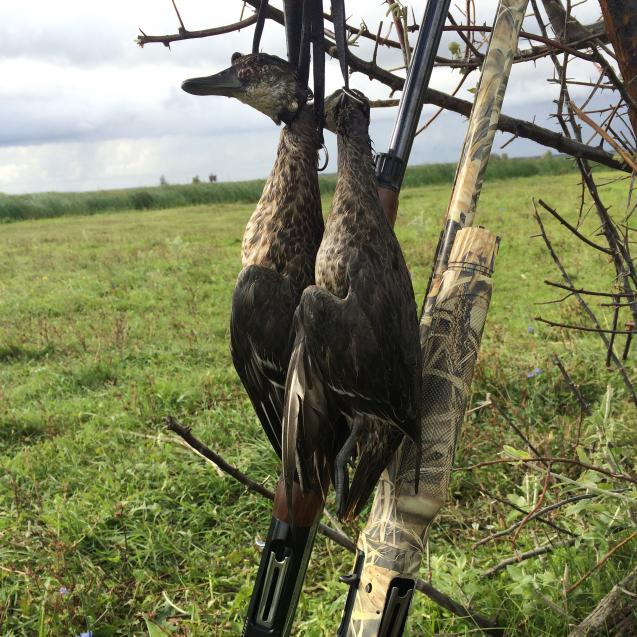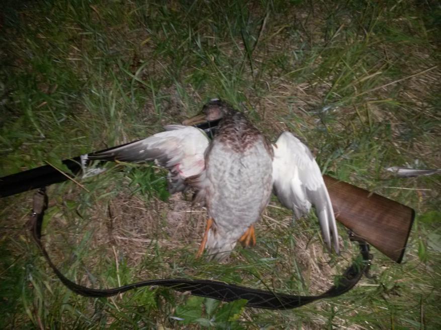 Был сегодня на новом месте. Спонтанно. На охоту не планировал. Зашел к тестю сосед (не охотник). Ездил за грибами и в поле увидел лужу с уткой, утка от машины вспугнулась, но через пару кругов села опять на лужу. Мы эту информацию приняли и поехали. Спугнули штук 15 когда подъехали, кинули 5 чучел, замаскировались сеткой и стали ждать. Минут через 30 прилетел селех и сел на лужу, был взят. Через полчаса аналогичным образом была взята серушка. Потом уже ближе к сумеркам видел высоко огромные стаи по несколько сотен голов утки, которые шли на кормовые поля. Небольшие стайки по 2-7 штук проносились над нашей лужей, 3 штуки были взяты. Уже по темному неоднократно садились к чучелам, но было много досадных промахов. Так что - утка есть, летает. Теперь необходимо освоить кормовое поле, понаблюдать, и нагрянуть с облавой.