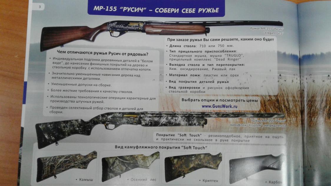 Уважаемые друзья, магазин "Оружейный двор" является эксклюзивным представителем компании "Ижевские ружья" по МР-155 Русич в Самаре: в нашем магазине представлен более 10 моделей Русичей (в орехе - Classic и Elegant Gr., и пластике - стандарт и с покрытием Soft Touch - расцветки Камыш, Осенний Лес, Криптек (3 вида), Карбон).