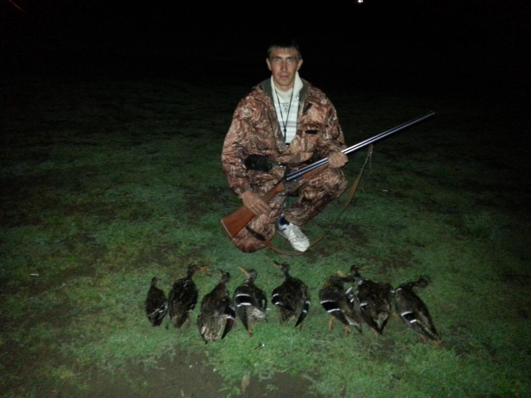 Вчера днем было решено съездить на новое место. По приезду мы расшугали всю утку и она куда то улетела....но то что началось в сумерках словами не передать...со всех сторон кряканье...свист крыльев только успевай высматривать. Взял пять штук минут за десять.