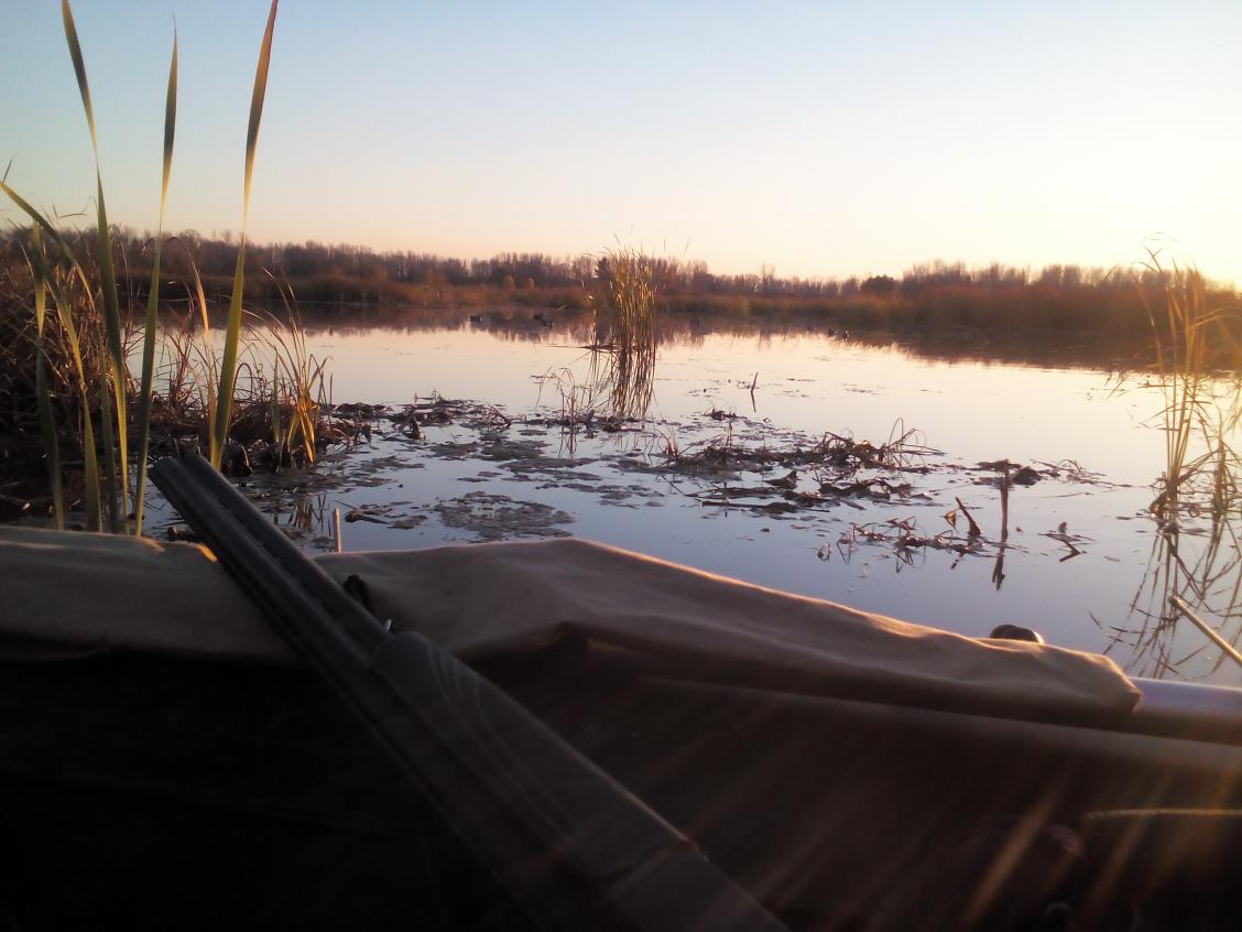 Всем доброго дня. Утка местная еще не покинула родных болот, но держится в очень труднодоступных местах. Подымается далеко, да и не удобно бить. Один на веслах, через плотный камыш и сухой тростник. Пока то, пока се-утка не досягаема,даже не стрелял. Но все ж стайка одна встала на пределе -выбил крайнюю дробью 5-кой самокрутом в контейнере с чока. Но это не самое трудное, а вот достать добычу проблема, т.к. лежит вроде и на виду на воде и достаточно недалеко, но пробраться через сухой тростник на резиновой лодке тяжело. Тростник торчит невысокий из воды 15-20 см. края острые как бритвы. Думал сейчас моя старенькая Уфимка (12 лет) прощально свистнет от пробоя и будет,блин, Титаник. Слава Богу, операция прошла успешно.