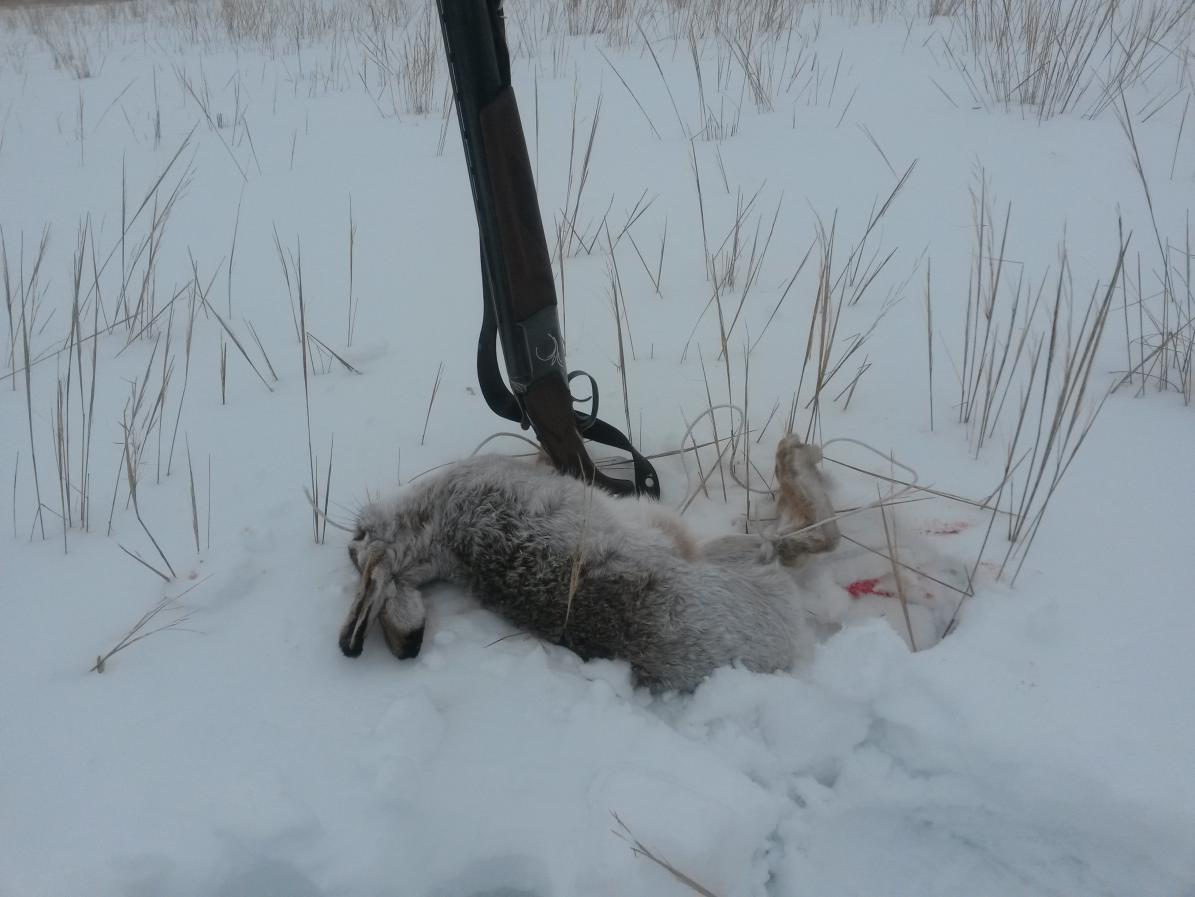 ...всем доброго вечера...ну и погодка нам досталась сегодня для охоты на зайцев), ветерок в степи за 20 м/с , да с дождем, да с крупой и под конец с метелью))...НО)), зайцев нагляделись, следов море, удивился немного, почти полным отсутствием "рыжих-красно-пегих"))- причина проста- за день на встречу промчались четыре снегохода ( и каких- последние модели 2013г)), думаю ребята не просто там бензин катают, видимо переусердствовали)))....и так по охоте, приехали, а ездили на седане, так что машину бросили у знакомого фермера, надели лыжи( очень хорошо сегодня показали себя полу-пластиковые лыжи с насечкой- снег не прилипал )... сразу за фермой начались следы...прогнали овражек- выгнали сразу пару, но этим повезло- были вне выстрела, потом еще из посадки, но косые никак не хотели идти вдоль-разбегались в стороны)))...потом все-таки мне повезло, нашел на хитросплетение)), но на то мы и охотники, чтобы распутывать, подъем!!- выстрел единицей...финал))) и потом 5 км против метели)))до машины)...