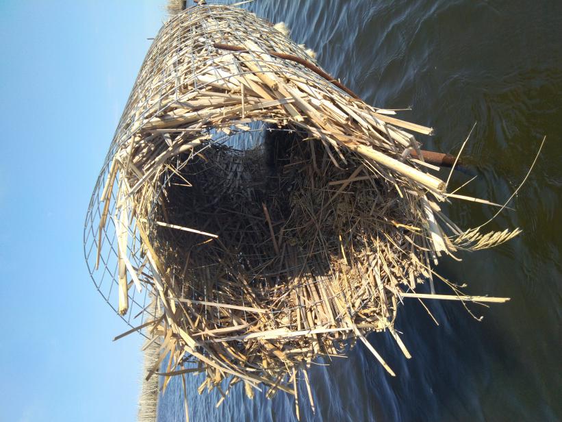 А тут фотографии еще двух гнезд которые стоят 11 месяцев и были набиты только сеном. Хорошо рядом были островки со льдом и снегом, не пришлось тащить их на берег. Отремонтировал на месте и установил обратно, так же осадив ниже к воде.