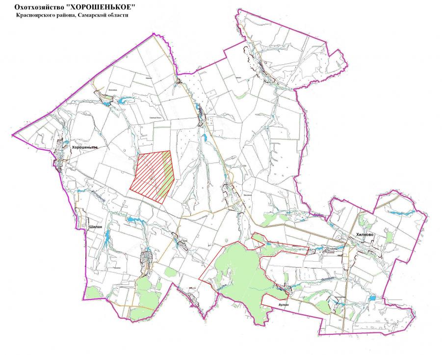 Кстати, вот во вложении схема охотхозяйства! То что заштриховано - воспроизводственный участок, он по факту помечен аншлагами, то что обведено вокруг леса - зона, в которой не рекомендуем охотиться с собаками! |