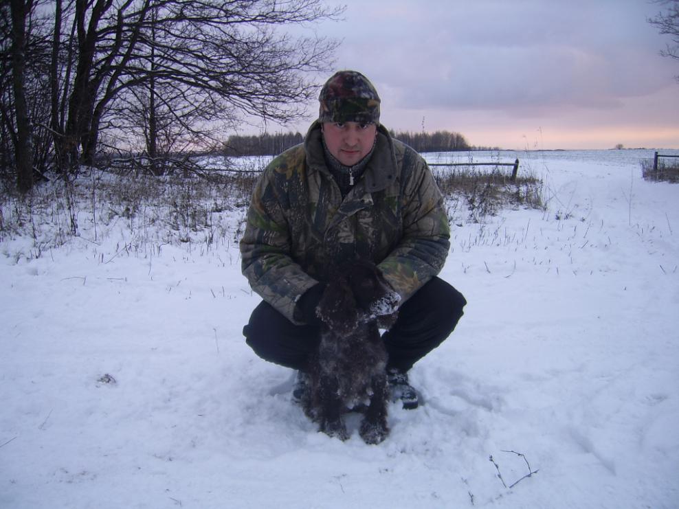 первая с Ермаком добыча! Вопрос к спаниелистам: пес подает утиные и разные крылья откуда угодно ,а утку настоящую не хочет.Что плдскажете? Песику 5 месяцев.Спасибо