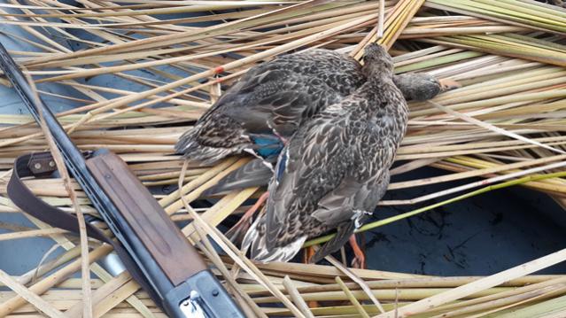 В преддверии заморозков, вчера до рассвета по навигатору, через 100метровую зону камыша пробился к закрытой баклуше. Даже маскироваться не надо было т.к их там никто никогда не беспокоил. Прилетало три стаи голов по 20, взял двух, одну бил зависшую надо мной с 4х метров в голову, в итоге осталась без онной. Тоже зобы набиты желудем.