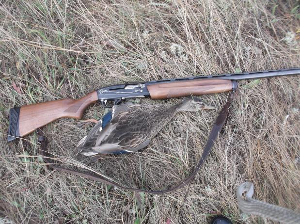 Сегодня утром с подхода к небольшому(метров 50 в диаметре) лесному озеру поднял штук 30 крякашей. Но как это часто бывает сидели они все на противоположном берегу и естественно улетать стали конечно не в мою сторону. Но видимо один молодой селезень решил всё таки продефилировать через середину озера. За что и был сбит одним выстрелом Феттер№7. Упал в прибрежные кусты замертво , где и был найден через пару минут. А потом случился интересный случай. Налетает тройка чирков на высоте метр от воды. Летят кучно , бью дважды. Один тряпкой падает на воду , НО словно от батута подпрыгивает. Начинает махать крыльями и догоняет своих собратьев. Я смотрел им в след пока они не скрылись из виду, всё надеялся что чир упадёт. Но нет-не упал. Крякаш оказался ужасно костышкастый, пришлось пиджачёк снять. А так охота вышла интересная и погода балует.
