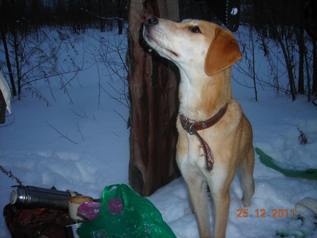 Сегодня наконец-то и мы попытали счастья по зайке. В 9.00 были на месте. Только вышли из машины и сразу следок. Товарищ решил посмотреть (посмотрел , так и ушел без лыж, к вечеру ног не чуял). Я встал на наиболее вероятный лаз, жду. Минут через десять яркая помычка и гон в мою сторону, а вот и он родимый. Ближе, ближе. а вот фига. Не доходя до меня метров 80 зайка плавно отворачивает. Тьфу-ты, ладно, гоняем дальше и гоняли мы его так аж до 16:30, так и не взяли. Собак поначалу как-то неохотно принялся за это дело, два раза скололся (пролетал скидки), но после обеда его как подменили. Зайка дал два приличных круга и уже под вечер ушел на третий и все круги собак прошел как приклеенный (просто здорово). За весь день заяц 4 раза проходил по ж/д полотну между рельсами (благо поездов небыло), и ни разу не прошел вдоль лесополос (пересекал их строго поперек и опять в поле), где мы его с нетерпением ждали. 3 раза проходил по жировкам. Все из нашей команды перевидели его раза по три, но не ближе 100 метров . Ну и юмор напоследок. Когда ухатый пошел на третий круг опять через поле начинало смеркаться и надо было снимать собаку. Папаня у лесополосы оставил лыжи (чтобы не мешались наверно) и пошел через поле в сторону собаки. Вобщем кое-как собаку снял и направился к лыжам. не доходя своих заветных лыж метров 10 у него из под ног вылетел косой. Я уписался от смеха, ружье на плече, в руках поводок и тут на тебе. Сожалению не было предела, этот маленький ушастый зверек сегодня чуть не убил в нас охотников благо смеркаться начало Вобщем так мы его и оставили, но думаю мы еще к нему вернемся.
