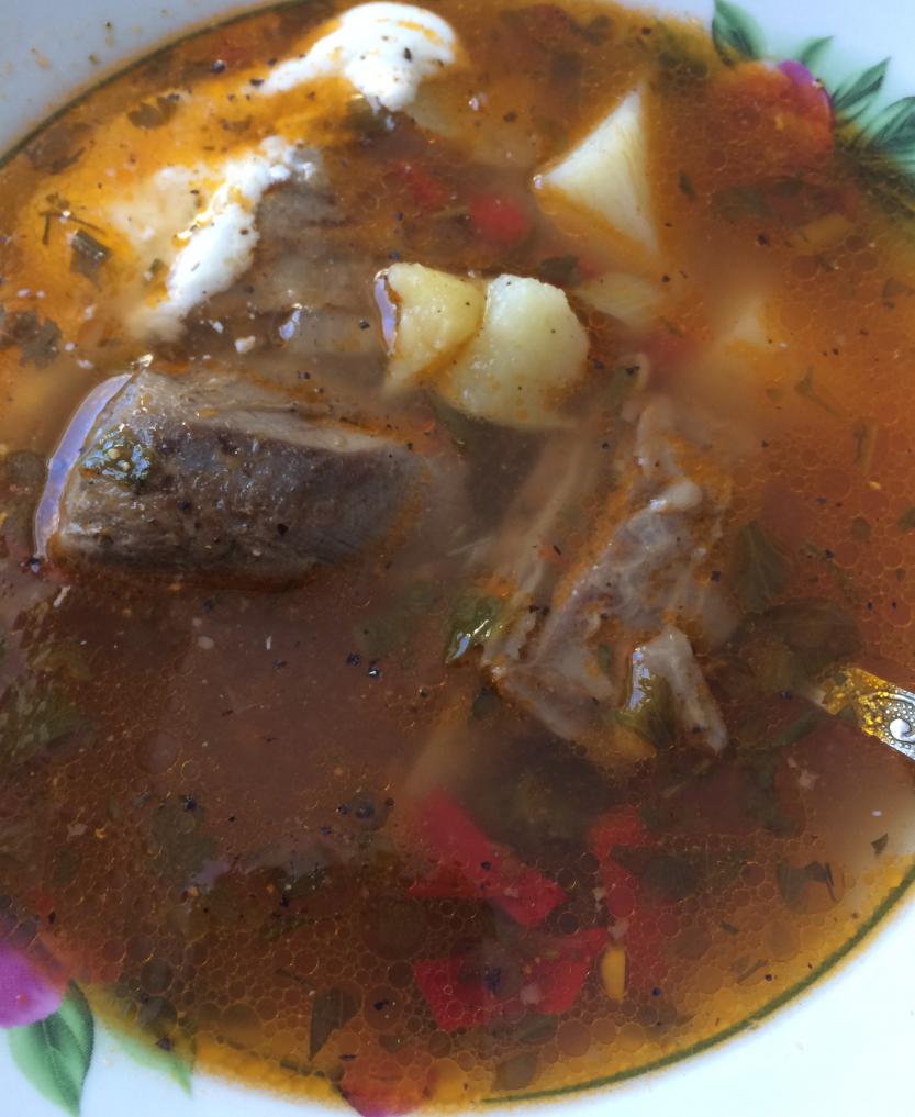 В выходные захотелось охотничьего супа. Время вагон, делать не чего, ружья на переоформление сдавать, так что готовим. Шурпа!!! Ребрышки косули вымочил за ночь, посыпал смесью перца и поджарил на сковороде (5 - 7мин.) Выкладываем в кастрюлю и заливаем родниковой водой. В бульон добавляем соль, перец горошком, лавровый лист, луковицу и морковь (все целиком). Я варю 1 час 20 мин., далее вынимаю морковь и лук и добавляю свеже нарезанных овощей: морковь и лук нашинкованные и перец болгарский. Через 15 мин. добавляю картофель. Параллельно готовлю поджарку: помидор с соусом Краснодарским (3 ложки), туда же чеснок мелко порубленный и зелень свежую (можно замороженную) обжариваю минут 5 и добавляю следом за картошкой. еще 20-25 минут на медленном огне и все... Родню за уши не оттащить! Все приятного аппетита.