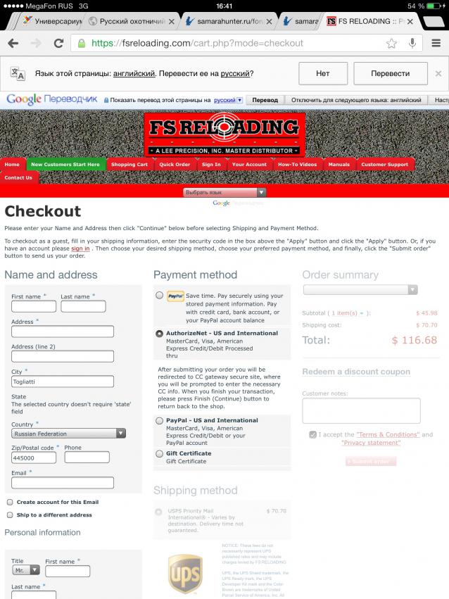 В этом году еще ничего у них не заказывал, крайний заказ был в ноябре 2013г. Так вот, стоимость товара была 227.08 $, стоимость доставки в Самару - 84.98$. И интерфейс оформления заказа был совсем другой, оплату через PayPal они не принимали, только картой. Что-то они изменили в своей работе с 2014 года.
