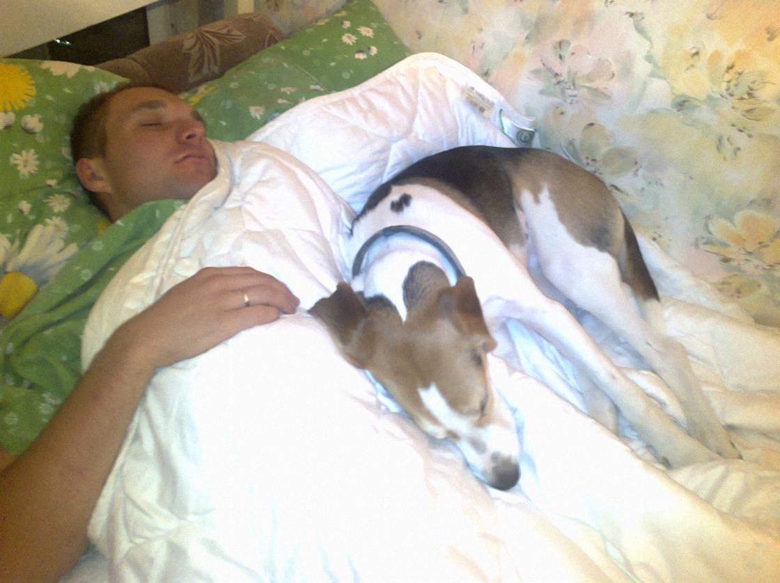 Собачке хорошо! Только впредь в кровати и будет валяться,это ты зря ее приучил.Не гоже скотине с хозяином спать!!! А зачем в собачем паспорте фото собаки?