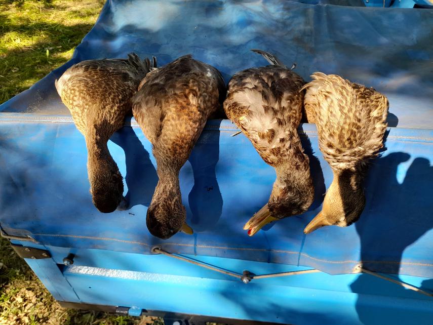 Один подранок пытается нырнуть, но всплывает. Вижу что некуда ему уйти. Сейчас подберу чисто битую и вернусь к нему. Он к этому времени дойдет. Это была моя ошибка. Стоило повернуться спиной к подранку, как я потерял его из вида. Не нашел я его ни вечером ни с утра. Очень жаль. Вспомнились рассказы, как утка ныряет и цепляется за траву. Напрасно загубленная птица.