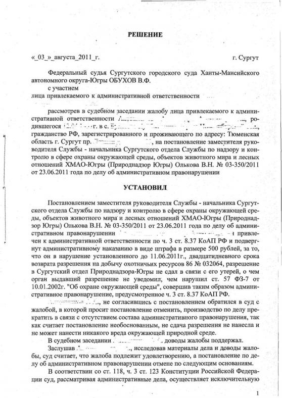 Как удобно так и называйте. На представленное решение Федерального судьи от 03.08.2011г. действовали типовое правила охоты, утвержденные Приказом №1 Главохоты РСФСР от 04.01.1988г. и отменен протокол по ч.3 ст.8.37 КоАП РФ. А ныне то в 2016 г. все иначе выглядит. Хотите судиться? Ваше личное право.Удачи. А так сдал и забыл. Но если наоборот Помнить будете весь год. Так как при повторном нарушении, в течении года, охотник может лишиться права охоты, решением того же суда.