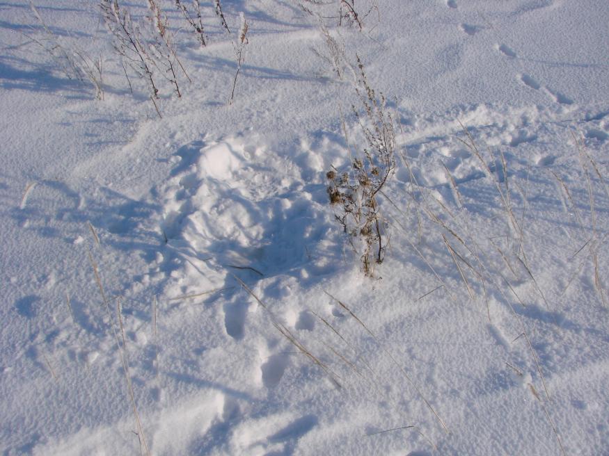 Утро. Та самая сова. Лисья лежка. Останки той самой лисы. Тот самый охотник за ЗАЙЦЕМ-ШАТУНОМ.