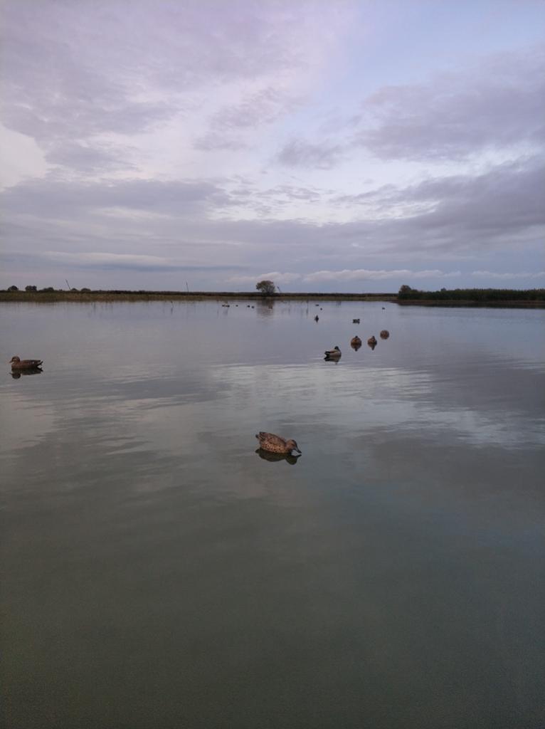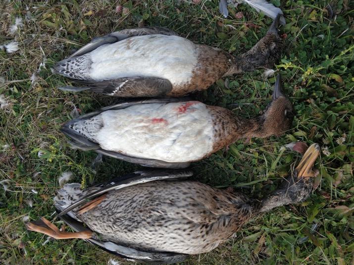 Воскресное утро выдалось морозным, на термометре было -4. Высаживаясь на озере, подняли стайку голов 20-30, выцелил селезня пожирнее) уже почти одетый, костыши только на шее и хвосте. Было всего пару налётов, но удалось выбить еще одну серую. Еще видели стайку журавлей.