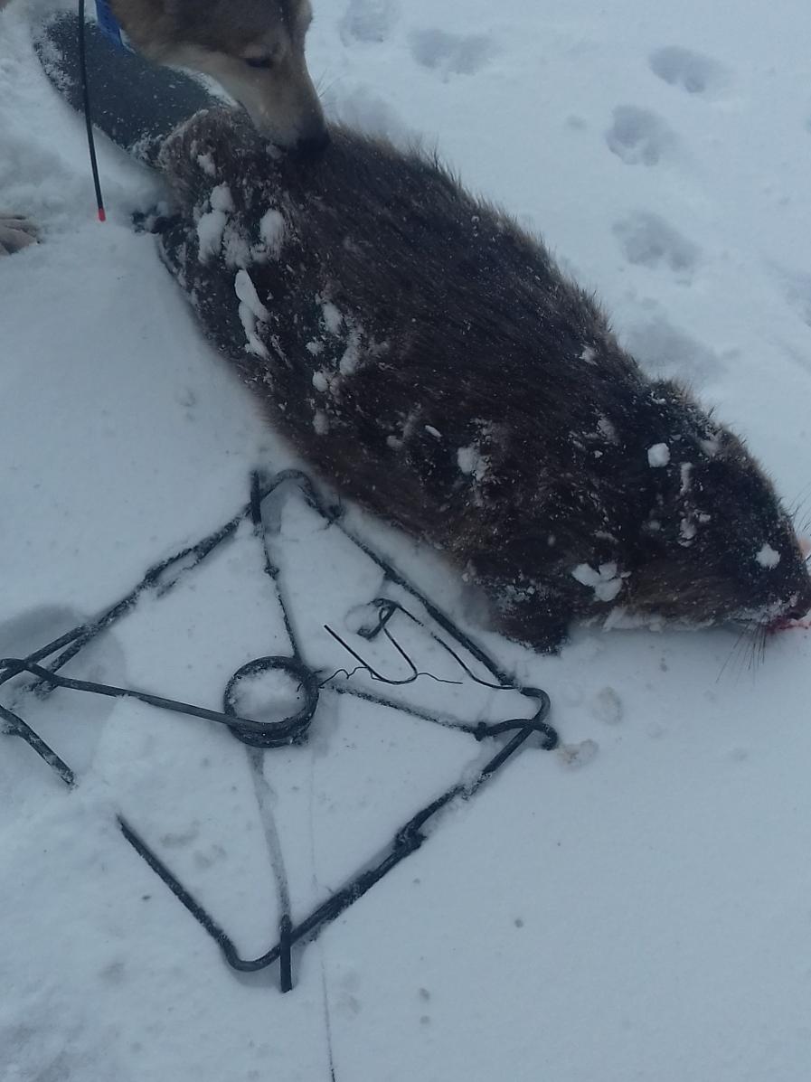 В воскресенье поставили несколько капканов, вчера вечером после работы удалось поехать проверить, 3шт сработали, но два впустую