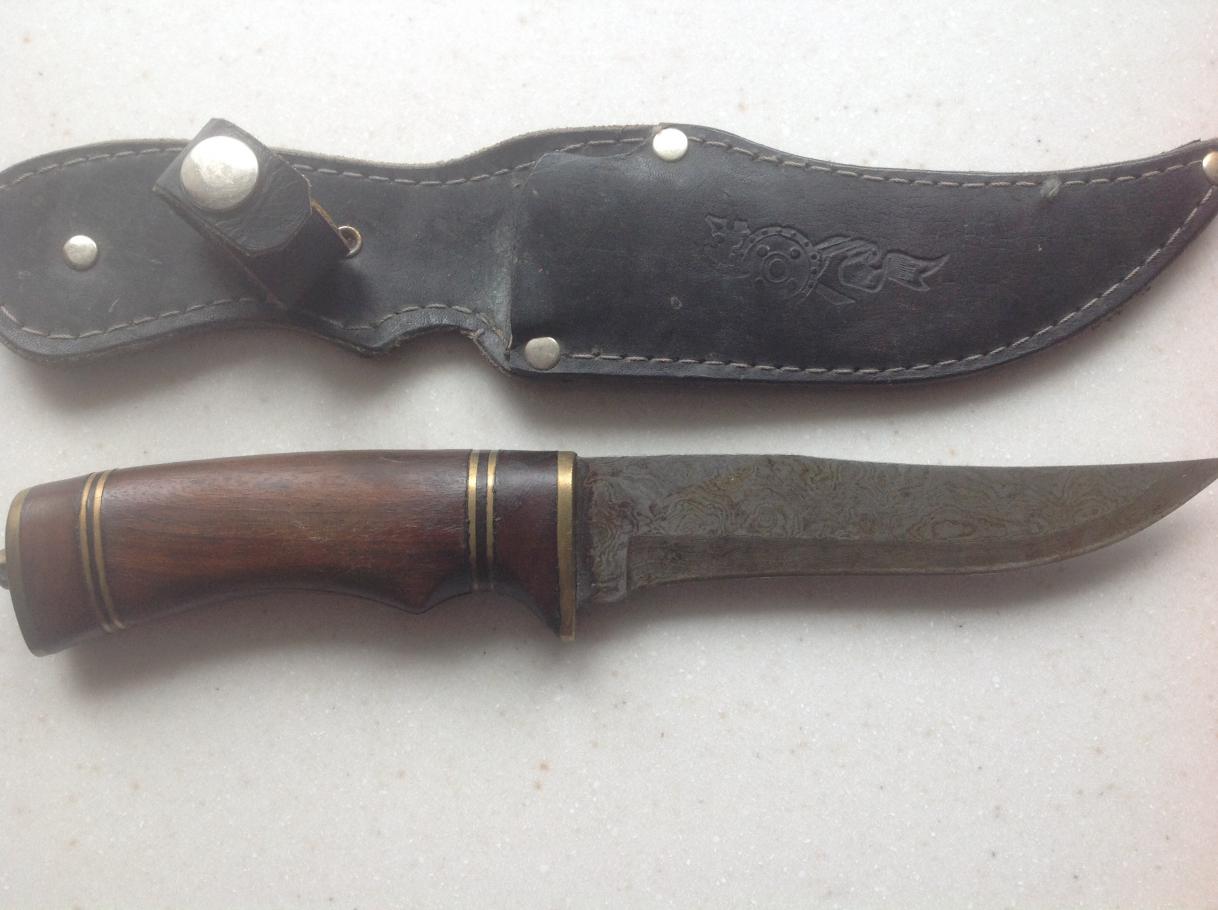 Вот мой один из первых охотничьих ножей!, покупал лет 17 назад, кто делал и какая сталь не помню, видел много дичи, точился всегда на охоте, лет 10 его не видел, сегодня вспомнил, нашёл!)))