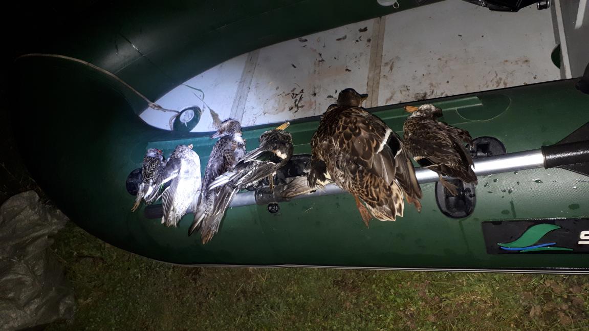 И вот, через полтора часа пути, сменив странника дорог на речного бродягу, я вдыхал полной грудью запахи воды и осенних проток. Из метеосводок и предыдущих постов услышал, что есть намек на движение "чужих первой волны", которое по моим заметкам, начинается в промежутке с числа 26-27 сентября по 4-5 октября - эти встречи были незабываемы! Потому взял, наконец-то, чучела! Немного, штук 30..... По прибытию на точку быстро обустроил место: раскидал чучела, растянул масксетку, расстелил коврик на дно лодки и обул белые носки..... Да, да, да! Я был лодке в белых шерстяных носках без обуви!!! Кто-то охотится в тапочках, а я в белых носках . И пошло ожидание.... А утка не летела.... Стыл горно-шорский таежный чай, мерзли патроны в стволе, даже чучела поглядывали на меня с непониманием процесса . Где мои верные друзья чирки? Только один хрипло отзывался с дальних камышей и не шел на встречу. Поменял холодный патрон в стволе на теплый ( верная примета! ). И тогда, только тогда, когда уже тень камыша на воде скрыла из вида чучалки, услышал откуда-то сверху и слева зов сердца - КРЯЯЯЯЯ! Мозг: мишень А боковая слева, - вскидка, поводка, обгон, спуск, шлеп об воду - классика! Для надеги в точку падения контрольный. Пять минут, и "из-за головы нисходящая в полуугон" на фоне небольшого зарева ловит 28гр спортинга и занимает место между чучалок кверху пузом. И фсё.... тишина.... Ужин, офигенный ужин на природе. Где еще может быть таким вкусным домашний блинчик, если в него завернуть ломтик сыра и запить горячим таежным чаем? Отдав дань чревоугодию, в лодке расстелил две пенки в сумме 2 см, новый спальник из Спортмастера. Бензобак и лишние вещи в 120-литровом гермомешке сложил прямо за борт в камыш на воду. И отдыхать ПОД ШУМ ТИШИНЫ, ОСТАВАЯСЬ В НОЧИ НАЕДИНЕ С ПРИРОДОЙ! Спал аки младенец! Поднялся еще затемно, позавтракал и ждать. А утро подарило еще пару хороших налетов. Пара начала заходить в чучела, и уже на проводнении выстрел... и ничего! Бывает. Следующий налет 4 красноголовых. А вот тут просто очумелый дуплет, и две утки плюхнулись в воду. Сам прифигел от своей стрельбы. Техническая инфа: патрон NRG 7,5 спортинг 28гр, дистанция 25-30м, сужение цилиндр с напором. На моем участке пролетных не заметил пока. Чирка не было! Хотя прошлые годы поднимал его там ооочень много. Ночью было около +4, спал в тепле в легком термобелье и флиске. Спальник такой