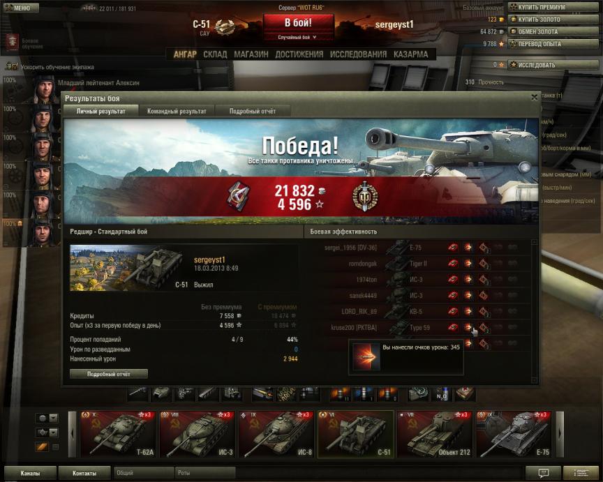 Дим, а без према че-то тоскливо после 5 лвл. Сам посмотри, 7 нагнул, % попаданий 92, а без према серебра бы чистыми взял 400 монет. Кста посоветуй машинку для фарма, а то с покупками всяких досылателей и приводов по полляма никак на ИСа бабла не наберу. Вообще думаю, мож прем танк взять? Какой из них (ПТ не люблю)? И еще один вопрос: нафига экипажи пересаживать? Какой смысл? У меня на Т-34 экипаж был обученный до 94 вроде %, продал танк, взял Т-34-85, такой же средний и один хрен переучивать либо за голду, либо за серебро до 75%. Правда я командира до 100% за голду выучил, остальные за серебро 76% + 10% от командира получили... Последний раз редактировалось evgen063; 18.03.2013 в 11:12. |
