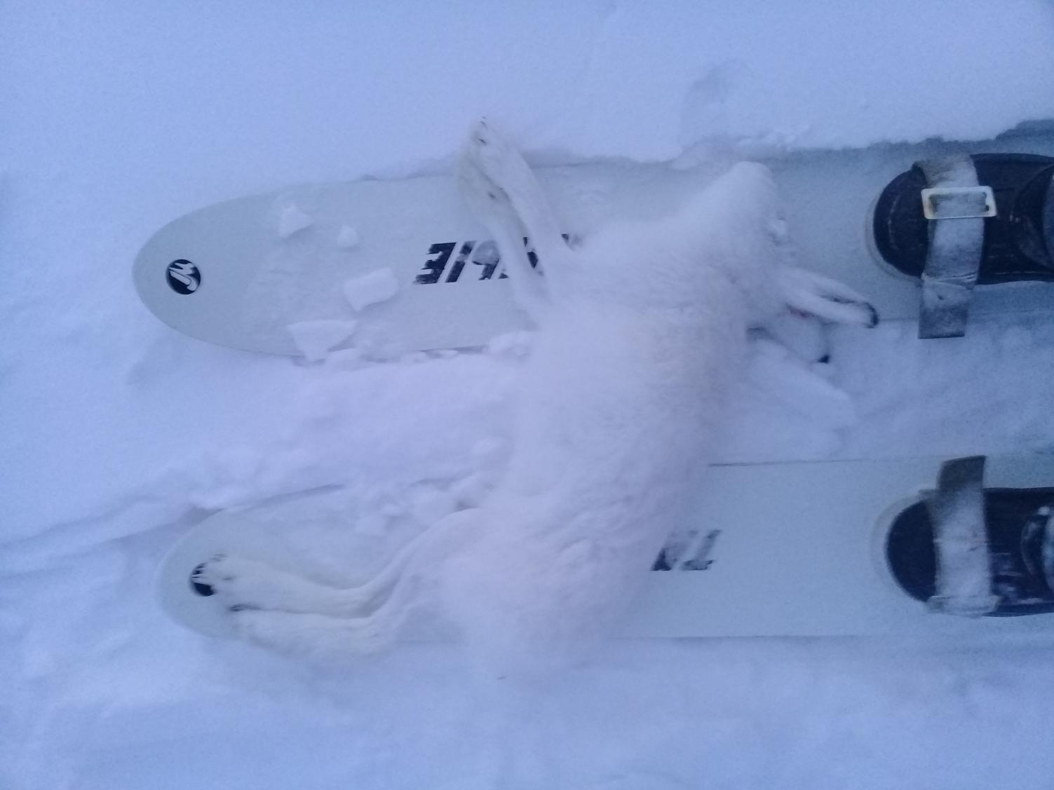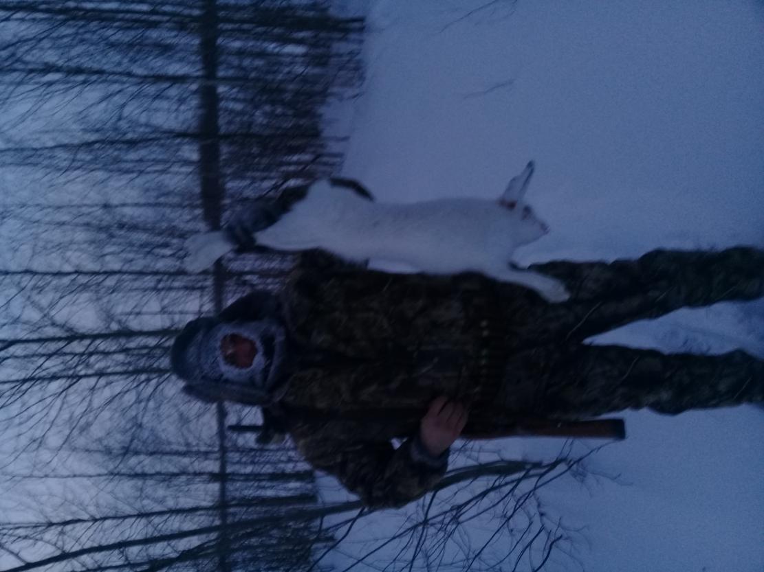 Выехали сегодня опять на вчерашнее место.А зайцев то тю-тю!Все истоптано,как будто их там стадо живет,а самих нет.Пошли шерстить другие участки и не прогадали.С подьема не попал метров с 40,выругался злобно и стиснув зубы продолжили поиски.Брат пошел обрезать,а заяц почему то выскочил оттуда,где брат проходил 5 минут назад.Сидел,пережидал чтоль..В общем,поехал он со мной))Патроны Рекорд N1.Мороз -32