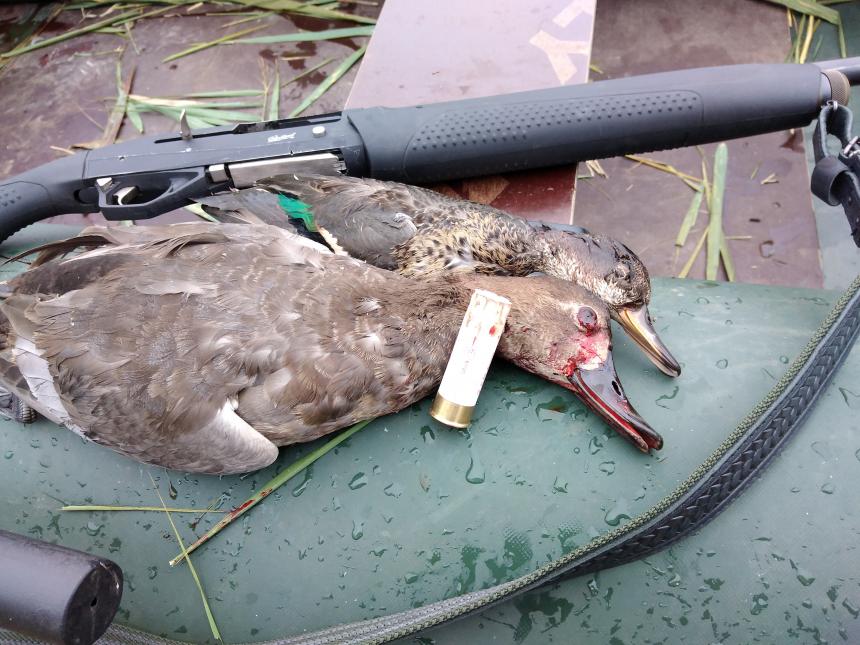 В воскресенье выбрались ненадолго на утрянку. Летало мало. С парочки налетов выбили по трофею. Пару небольших стаек подманивали к чучелам, но на верный выстрел они не подлетали, стрелять не стали. Ещё пара чирков, пронеслась низко, но на сверхзвуке, как будто целенаправленно куда-то летели, даже ружья в кинуть не успели.