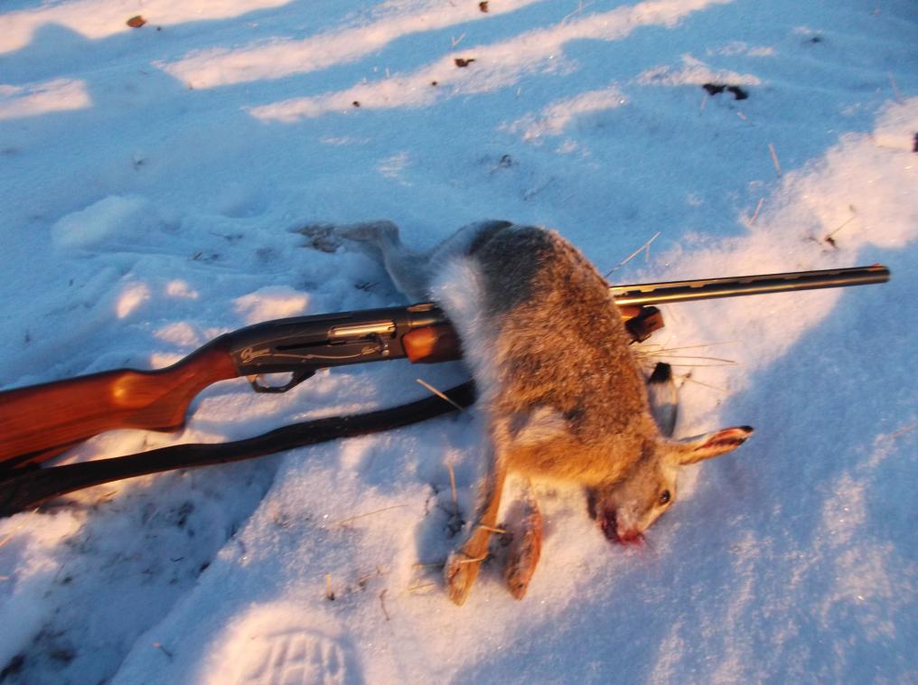 Отохотил два дня подряд после снегопада. Вчера облазил почти весь охотучасток - следов нет. И только собрался домой как перед выездом на трассу увидел долгожданные следочки. Видать гулял заяц рано с вечера, следы были припорошены слегка. Пошёл тропить по полю убранного сена. Минут через 15-20 пришёл я к придорожным кустам где налажал по полной программе. К подъёму был готов на 100 процентов. Заяц поднялся в 3 метрах справа и побежал от меня забирая в лево( выставляя тем самым бочину).А я начинаю прицельно херачить метров с 15 и по нарастающей. И вижу всё отлично и упреждение беру и так и сяк и 5 выстрелов мимо. Позор . Полное фиаско. Немогу до сих пор понять как такое случилось. Дома дважды пришлось кальвадоса употребить что бы отлегло. Выкрутил получёк и заменил на цылиндр с напором. Думаю ну завтра вы заячье племя мне за такое унижение ответите. Примчался сегодня с рассветом. Следов полным полно . Мороз -20. Снег хрустит предательски. Пошёл тропить по культивированной пшенице. Крутил он меня крутил и я в итоге потерял след. Но межды полями была разделительная полоса из травы шириной 5 метров. Думаю- Ты морда там должен залечь. Пошёл по середине этой полосы. Подъём все равно был неожиданным. Метров 5 передо мной. Успеваю выстрелить дважды в скрывающуюся уже в траве короткохвостую задницу. Думал что промазал. Побежал за зайцем не видя его и пробежал мимо уже бездыханного тела. Метров через 30 останавливаюсь и думаю -А что это заяц не выбегает в поле. Постоял и пошёл назад к месту куда стрелял. И обалдел - Вот он же заяц лежит и не шевелится. Получилось что я через него просто перепрыгнул когда бежал. Да и умер зайка мгновенно видимо - 6 дробин №2 по грудной клетке. Хорошо филейная часть не пострадала. Прилив радости неописать. Домой шкурить и рюмочку своей чачи за первого зайца в сезоне.
