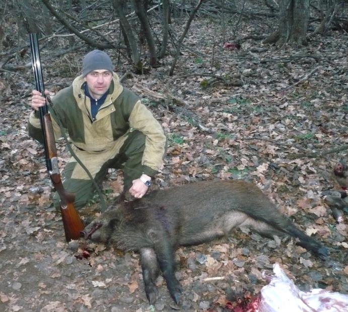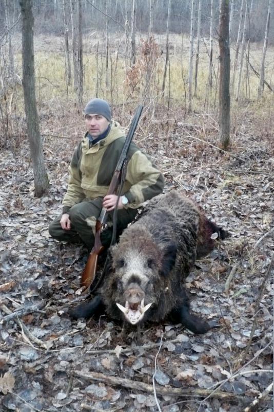 Славно поохотились на коллективной охоте в субботу! Добыт трофейный секач!