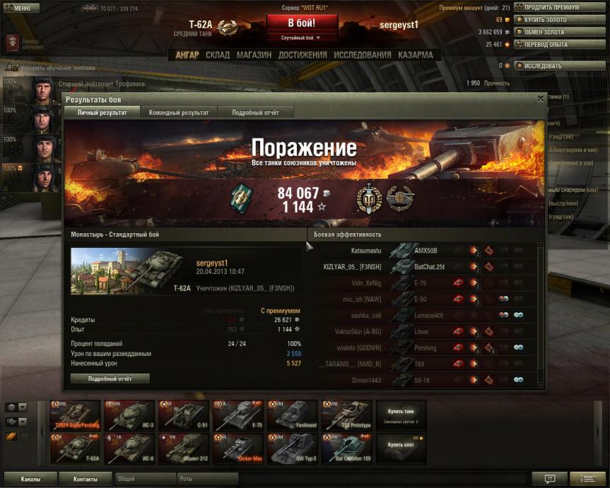 сразу поясню 5 прямых попаданий остальные сплэшем( потому ,что противник ныкался за камнями). Последний раз редактировалось sergeyst1; 19.04.2013 в 09:58. |
