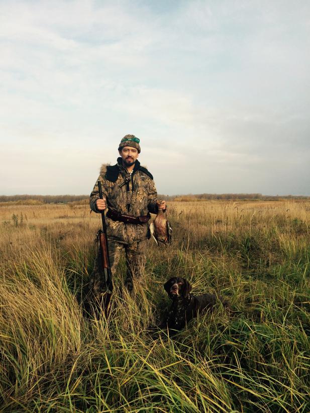 все ж холодновато уже для курцхаара (да и для меня тоже ),поэтому охотился не в болоте а с дамбы, без чучел , со стульчиком...