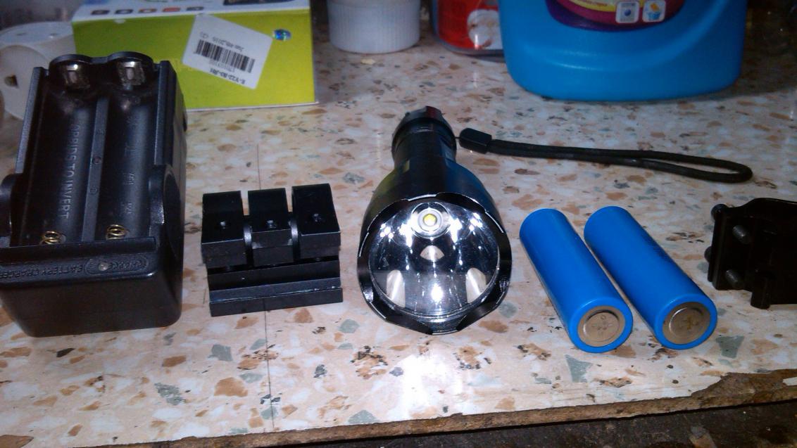 фонарь с зарядником и аккумуляторами 1000р, крепление 250р.