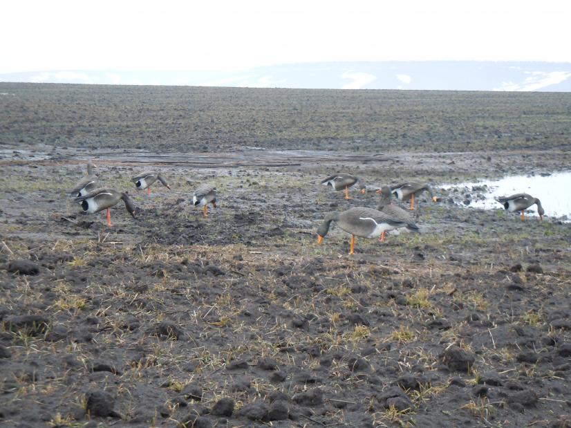 Полнотелые муляжи из мягкого пластика, сминаются и расправляются через отверстие в корме, в комплекте 4 сидящих и 8 кормящихся, шеи покрашены акриловой водостойкой тиккурилой, не отваливается, не трескается.