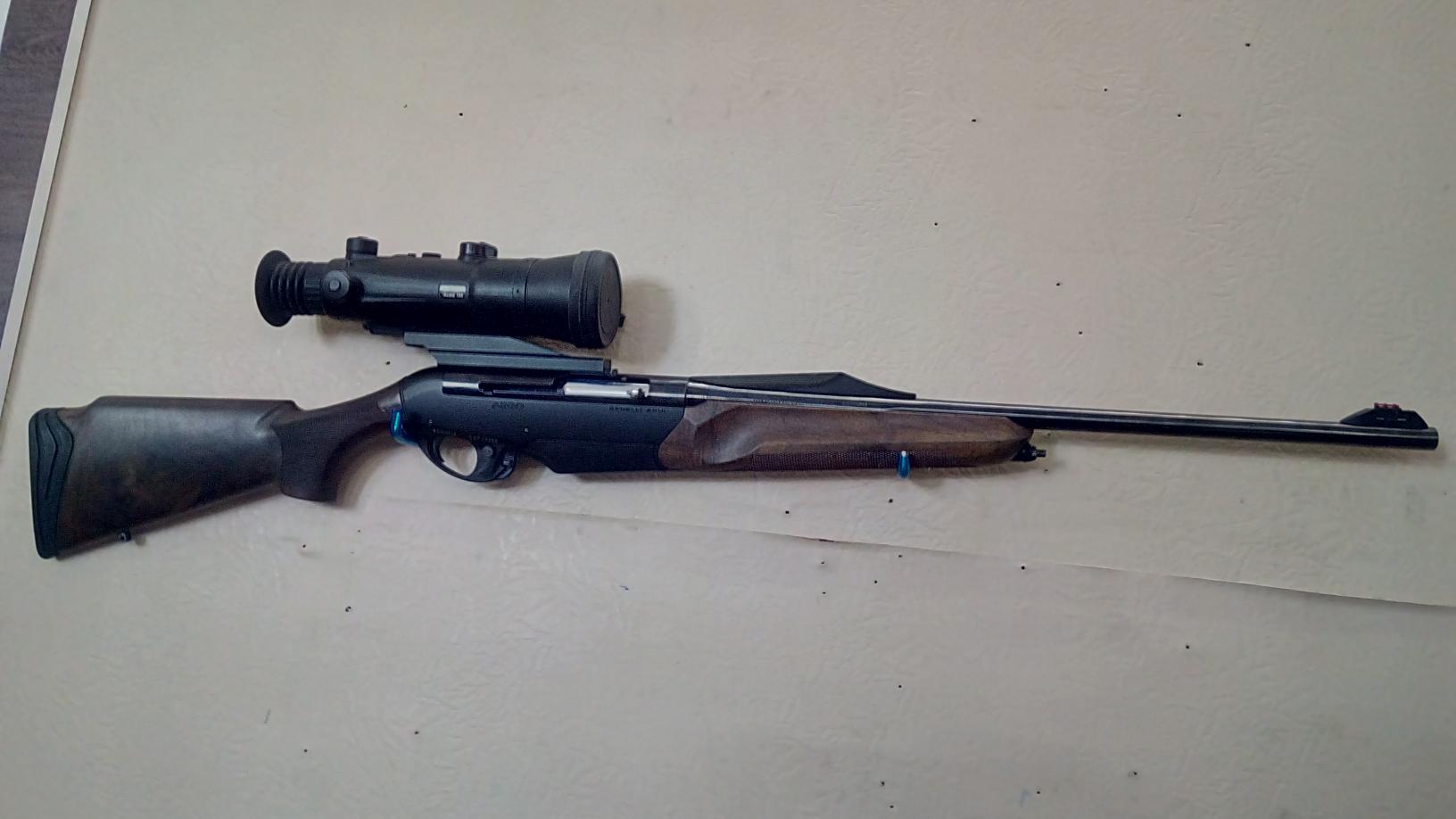 Нарезной карабин Бинелли Арго 9,3х62 с ночником Дедал 180Н(первое поколение).Настрел 60 выстрелов. Пристрелян.Использую патроны Норма Орикс, 18,5 гр. При установки дополнительного ИК-фонаря Пульсар Х850 видимость в "глухую" ночь можно стрелять на 150м.