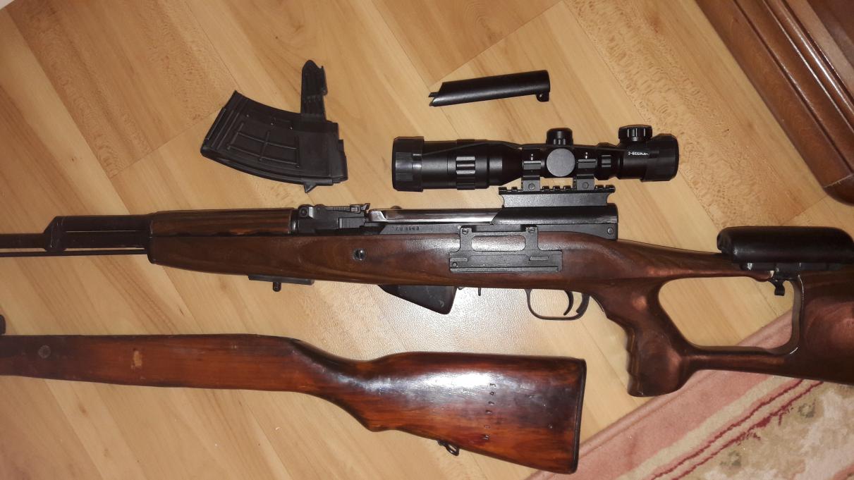 Предлагаю почтенной публике СКС-366 ЛАНКАСТЕР, немножко в тюнинге но всё обратимо, основа 1950г на одних номерах, даже родное ложе с номером..Что сделано , отъёмный родной магазин с доработкой подачи, установлен ДТК Егерь с небольшой доработкой по месту, заменено ложе(родное в комплекте), прицел и крышка с вивером(родная крышка в комплекте), магазин СКОС доработанный до нормальной подачи 10 патронов, резиновый затыльник и два чехла, родной от молота и побольше под новое ложе и прицел . Пенал в комплекте.
