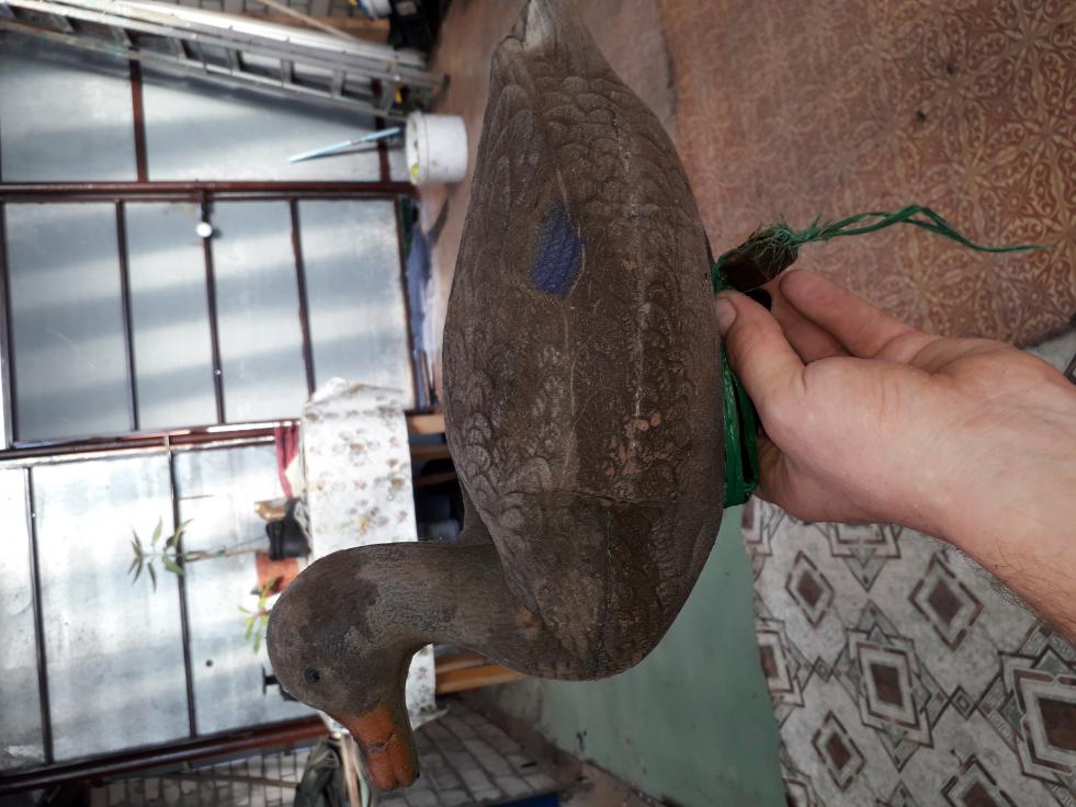 Как я упоминал в одной теме, через два сезона мои сминаемые чучела стали неразминаемыми. Материал поизмялся и перестал держать форму. Какие то плавали вполне сносно, а большая часть набирала воду через технологическое отверстие предназначенное для разминания и сминания. И с большим креном, а иногда и только голова над водой была видна. На днях придумал как вновь научить моих пвх питомцев держаться на воде, и быть похожими на мясных перьевых собратьев. В общем купил детских надувных шариков. Вставил в то самое технологическое отверстие и надул. Теперь они хоть и не сминаемые, но хоть на уток похожи! Пока не испытывал, но думаю будет все нормально.