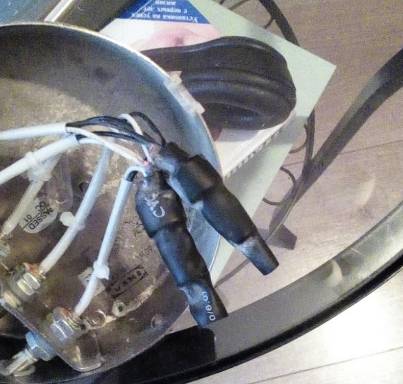 Ещё раз: отрезал от старого светильника провод с димером (на втором фото - как раз место отреза, где черная термоусадка), воткнул в коннектор нового светильника - не горит. Вытащил. Проверил один конец - горит пробник, по наитию ткнул во второй - тоже горит.