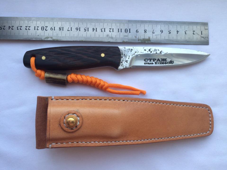 Нож изготовлен в кизляре,покупался за 3500,ножны шил на заказ за 2000,цена продажи 3000 +торг. Нож отличный,сразу после покупки был переточен у хорошего мастера под другой угол,для работы именно по мясу. Толщина обуха 3,5 мм,остальные габариты видно на фото,рукоять венге,ножны кожа растительного дубления,темляк 550 паракорд и рог косули,твердость по роквелу 62-64. Сталь отлично откована,из пробега,после переточки два крупных барана,от забоя до полной разборки туши,без какой либо подводки,нож остался в таком же рабочем состоянии. Очень резуч,в руке лежит очень удобно несмотря на небольшие размеры. Отличный компактный помощник для любых условий.