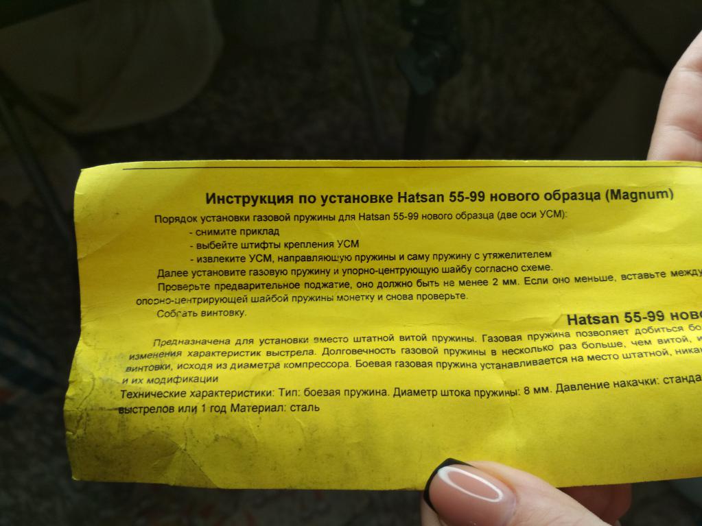Только что прочел паспорт замененной пружины. Оказывается, стоит газовая Hatsan 55-99 магнум на 150 атм. Винтовка с родной пружиной на сайте этого магазина оценена в 7600, для справки.