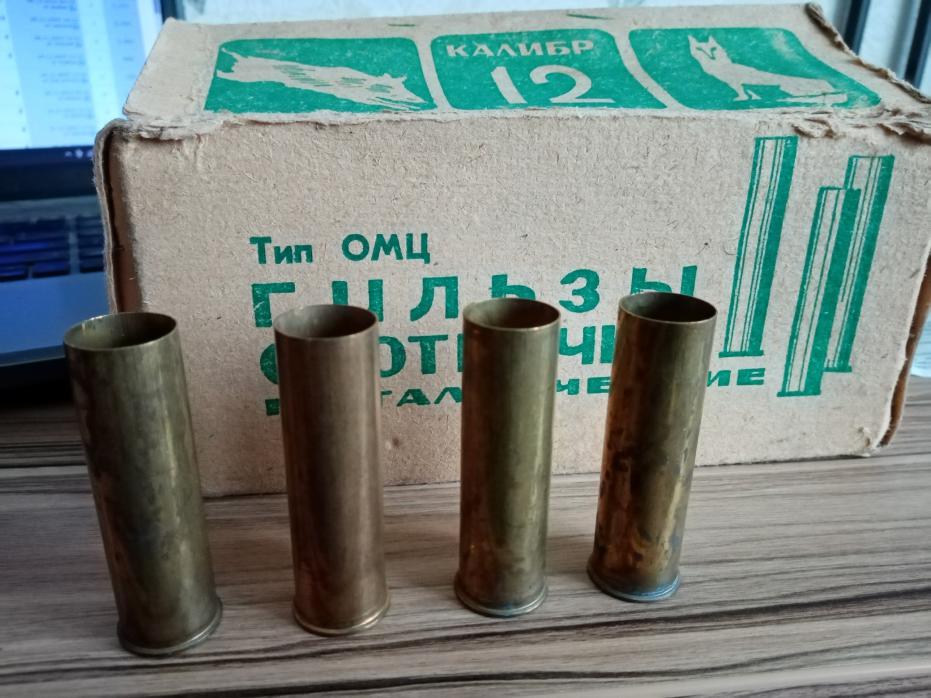 Гильзы латунные 12 калибра БЕЗ КАПСЮЛЯ под центробой. Новые, выпуск 1984 и 1991 г. Не стреляные ни разу, на металле патина времени (мог замочить в уксусе и они бы засверкали как котовьи шарики, но не вижу смысла). Всего в продаже 44 штуки, была полная коробка,но 6 штук оттуда я забрал и активно использую - из 43 ижака бахают отлично, что на дымаре, что на соколе, гильзы переснаряжаются прекрасно. К гильзам отсыплю ништяков (кнопок, пыжей-заглушек). Цену вижу 60 руб за шт.