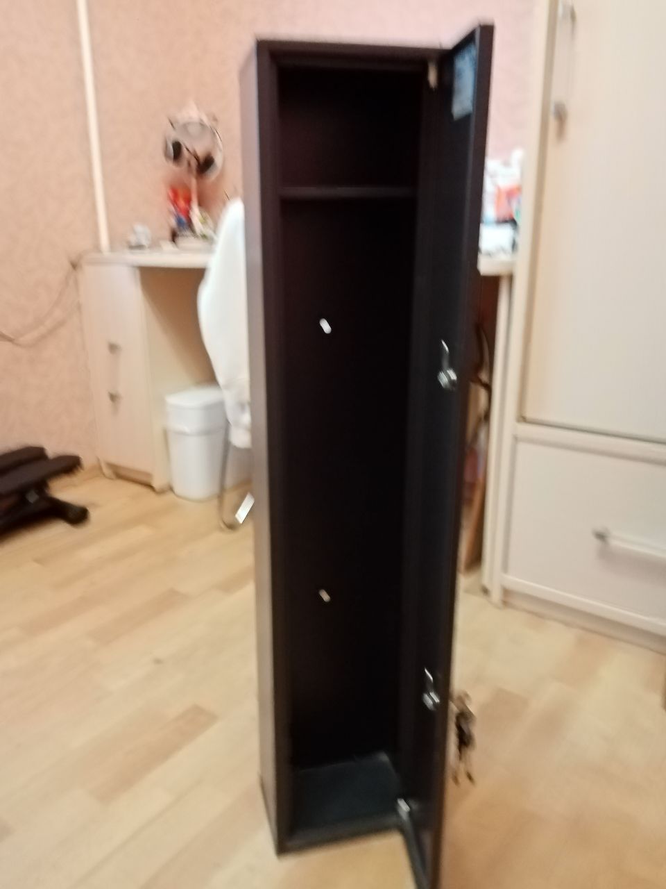 Сейф оружейный AIKO Колибри. Предназначен для хранения огнестрельного оружия. Сейф соответствует требованиям ст.59 Постановления правительства РФ №814 от 21 июля 1998 года «О мерах по регулированию гражданского и служебного оружия и патронов к нему на территории РФ». Комплектуется двумя ключевыми замками, есть анкерные отверстия для крепления сейфа к стене. Есть отделение для патронов, комплект ключей. Линейный размер от поверхности дна до патронного отделения. Размеры сейфа: высота 1000 см, ширина – 213, глубина 153 см. Хранил 2 ружья – Иж-81 (коротыш) и двудулку разобранную. Состояние отличное.