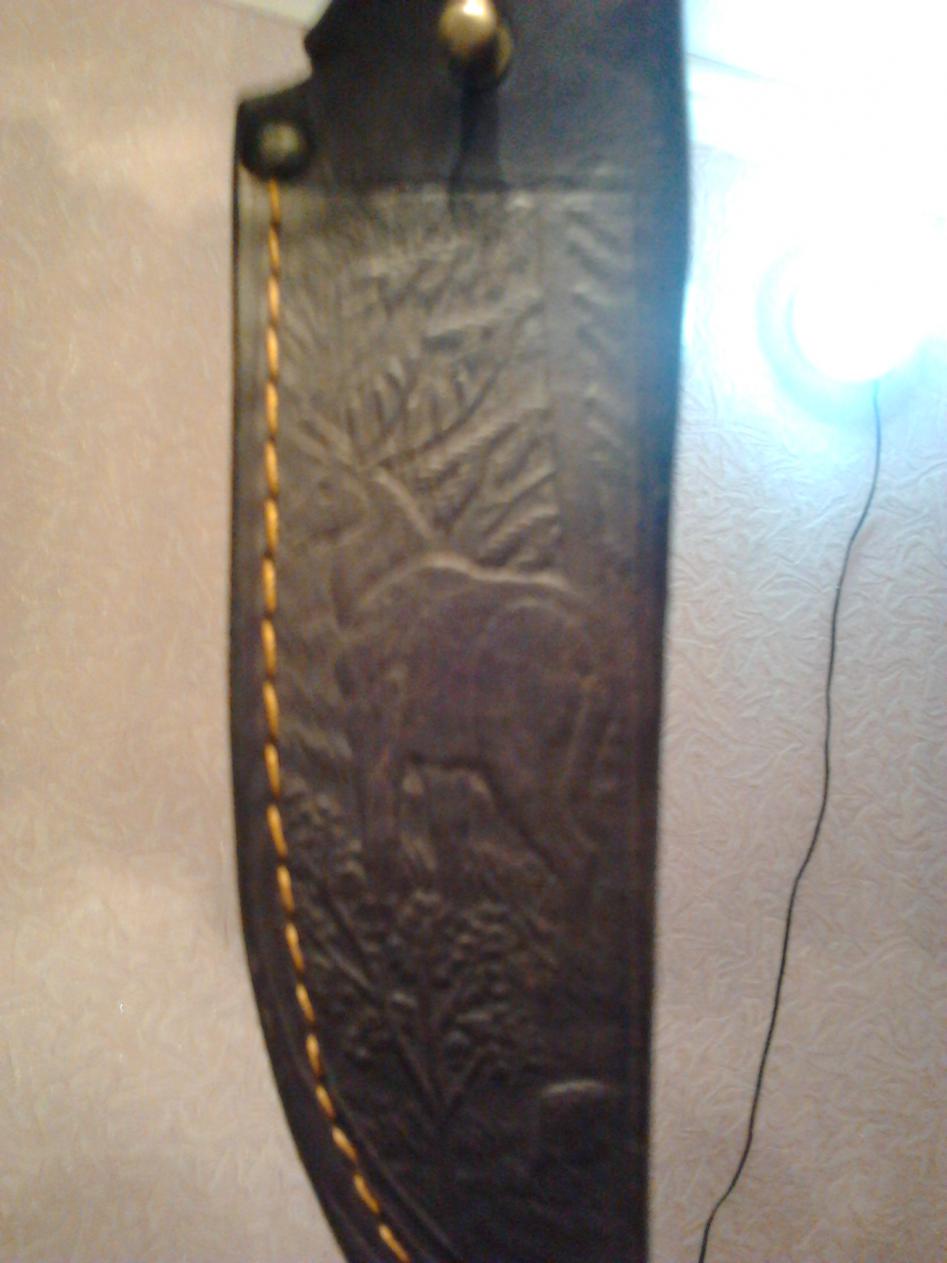 Рукоятка красное дерево-береста,клинок сталь х12мф,ножны кожаные с рисунком(состояние нового).Цена:3500 руб торг Тольятти(автозаводской)