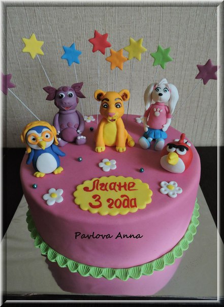 В этих примерно по 2.5-3 кг . Все фигурки и камыш есть можно, так как это сахарная мастика но в основном люди оставляют их на память!!! Торты много заказывают на детские праздники с персонажами мультиков !!!