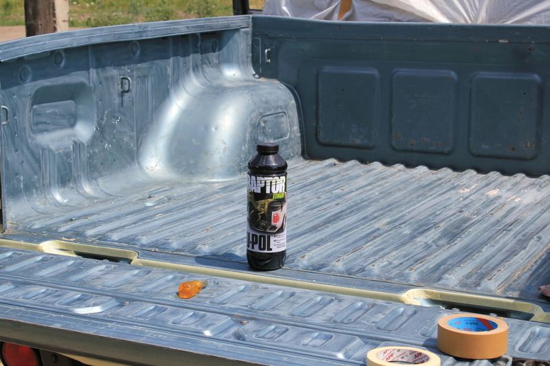 Закупил "Раптор" и все то, что необходимо, выбрали погожий денек без ветра (потому как подходящего гаража тогда не было) и вдвоем приступили к работе. С помощью наждачной бумаги зачистили обрабатываемую поверхность. Потом с помощью малярного скотча вывели границы обрабатываемого участка, закрыли все то, что не подлежало окраске, обезжирили и наконец окрасили. После окраски есть один засадный нюанс, вовремя удалить скочт иначе будут задиры по краям и эстетика пострадает (у нас вроде получилось ОК).