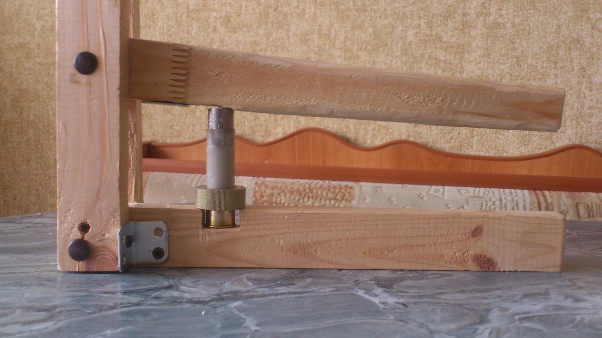 Каменный век в прошлом, настал деревянный! Т.к. на работу сегодня не вызвали, дай думаю гильзы бу переберу. Отобрал несколько, надо донце обжать. Дежурный кирпич лежит на балконе, кто помнит его (по моему пост №96). Посмотрел на него, опять колошматить молотком, соседей пугать. Хотел приспособу какую-нибудь сварить в деревне, но руки так и не дошли. И стучать молотком как-то не охото. Вообщем увидел на балконе брусочки оставшиеся после ремонта и понеслась . . .
